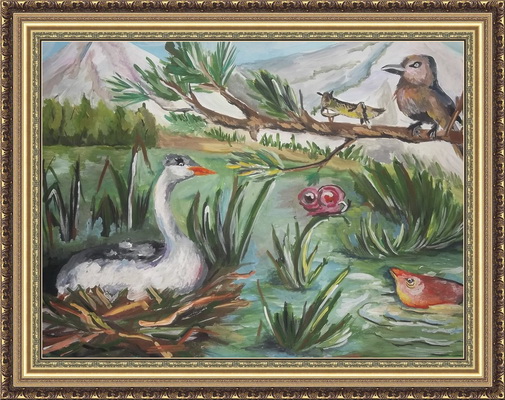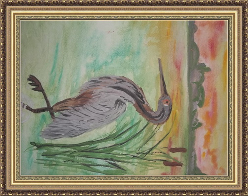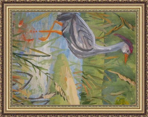 Третье место -Цапля на болоте Молчанова Ксения, педагог Крутяков Алексей Евгеньевич. Детская художественная школа №4 "им. П.И.Котова филиал п. Верхний Баскунчак", Астраханская область, п.Верхний Баскунчак