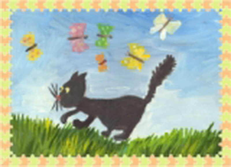 Победитель -Котик Тимошка и птички на летней полянке Виолетта Буртниекс, педагог Кирьянова Ольга Петровна, Дом детского творчества, г. Шахты