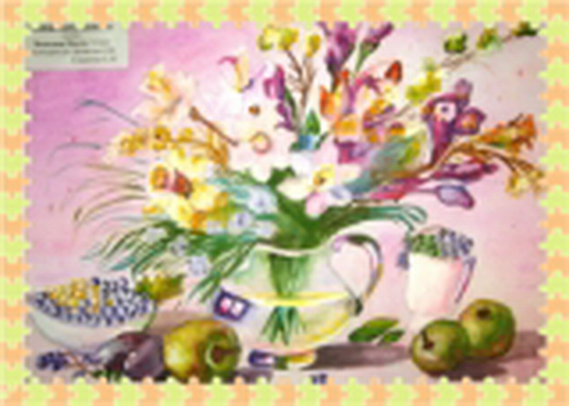 Третье место -Натюрморт с цветами Левакина Настя, педагог Бунакова Лариса Викторовна, Смирнова Елена Ивановна, Детская школа искусств, Челябинская область, г. Бакал