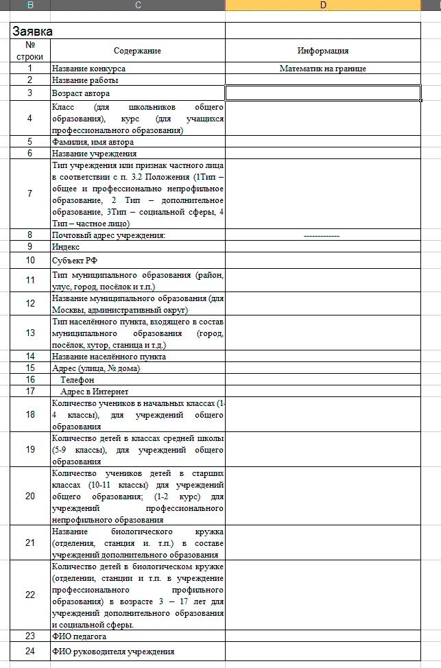 ЗАЯВКА