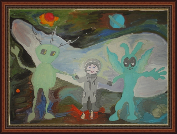 Третье место - Здравствуй космос! Филиппов Слава, ДДЮТ студия "Роспись по дереву", г. Иваново