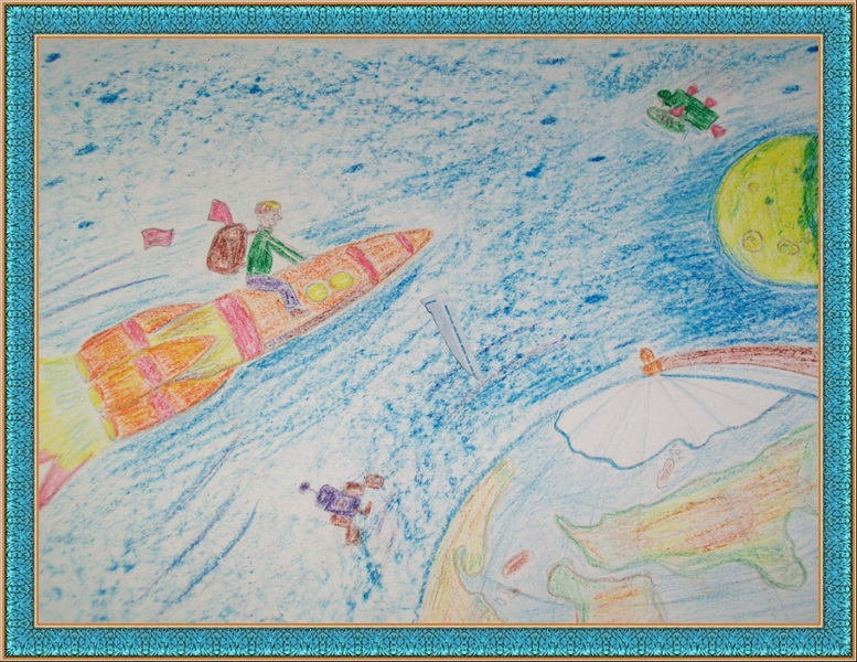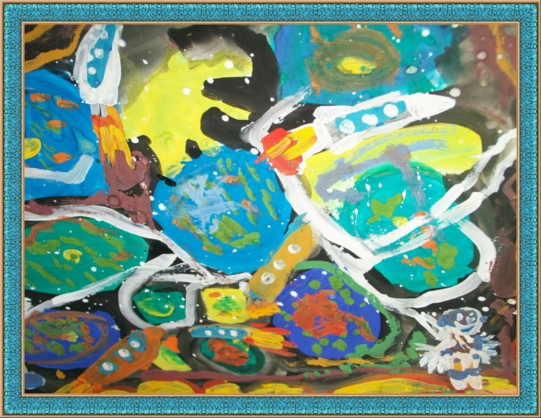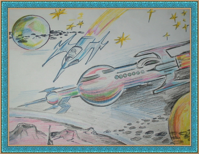 Третье место - "Космические корабли бороздят Вселенную" , Жалсапов Юмжин, Республика Бурятия, г. Улан-Удэ, Детский сад№ 173 "Росинка"