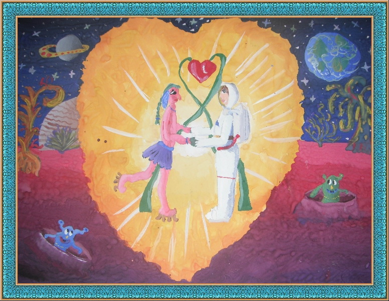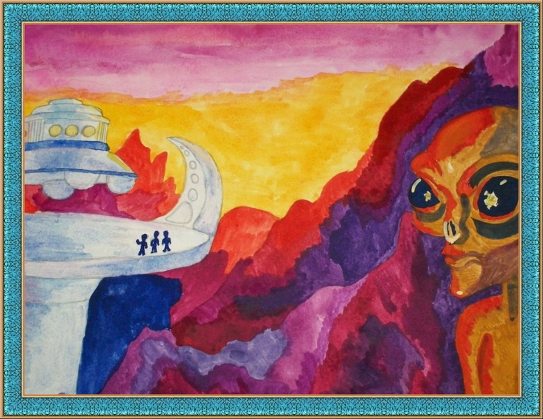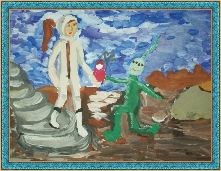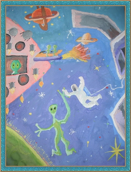 Второе место- "Пусть всегда дружат россияне и инопланетяне" , Мартынов Владислав, п. Мокшан, Школа искусств