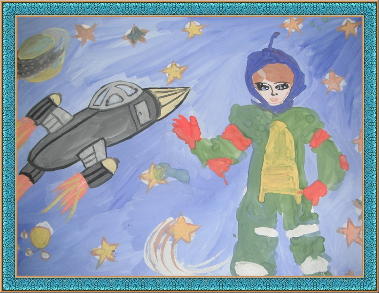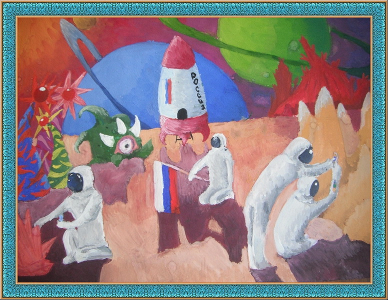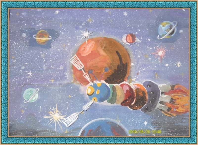 Второе место- "Вместе весело шагать по космическим просторам" , Абуткова Полина, р-н Нижнеломовский с. Прянзерки, Основная общеобразовательная школа