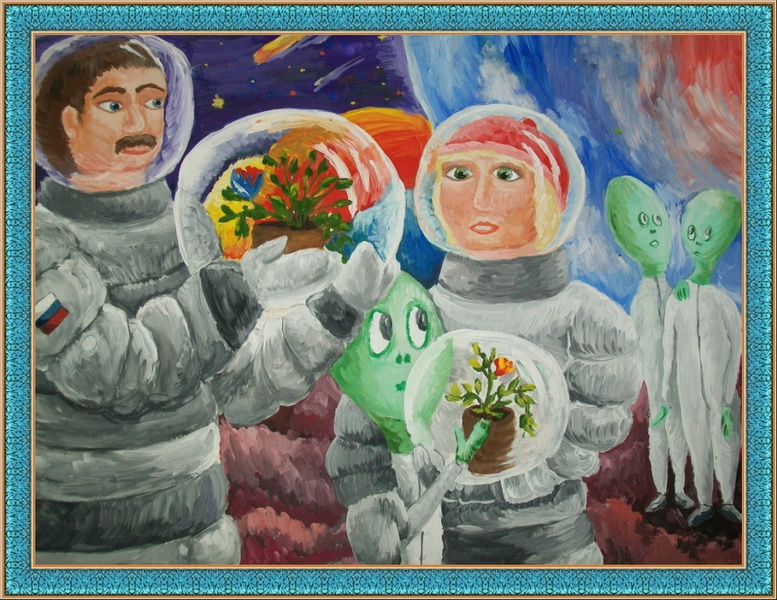 Третье место - "Русские космонавты берут на воспитание маленького инопланетянина" , Бунин Дмитрий, Пензенская область, п. Мокшан, Средняя общеобразовательная школа №2