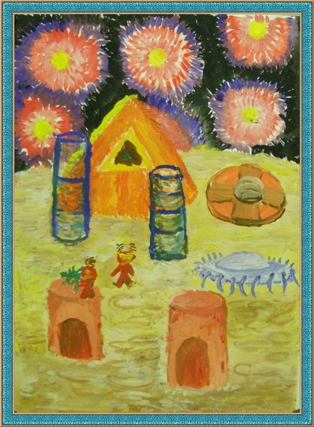 Второе место- "Астрологи на планете Лэчка" , Жиркова Ангелина, р-н Амчинский с. Абага, Детская школа искусств