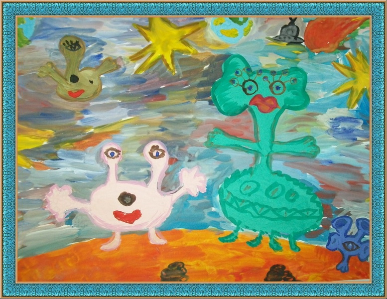 Второе место - Друзья с далекой планеты , Февралева Ангелина, г. Новошахтинск, Детская художественная школа им. Н.В.Овечкина