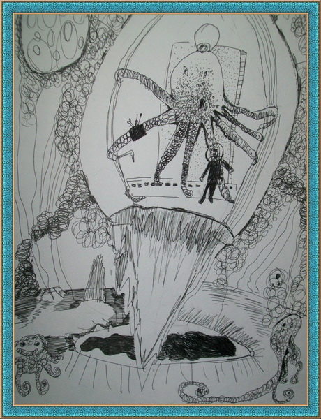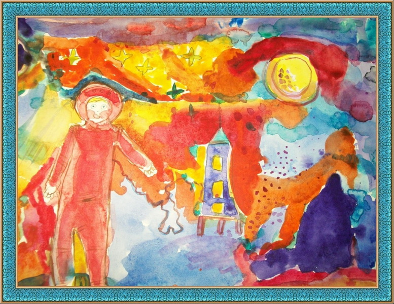 Второе место- "Гость из космоса примеряет скафандр человека" , Почтаркин Вадим, р-н Жигулевский п. Яблоневый Овраг, Детская школа искусств №2