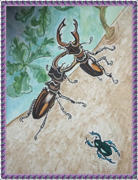 Второе место -Сражающиеся жуки-олени Тлешов Роман, Центр детского творчества, Амурская область, г. Тында