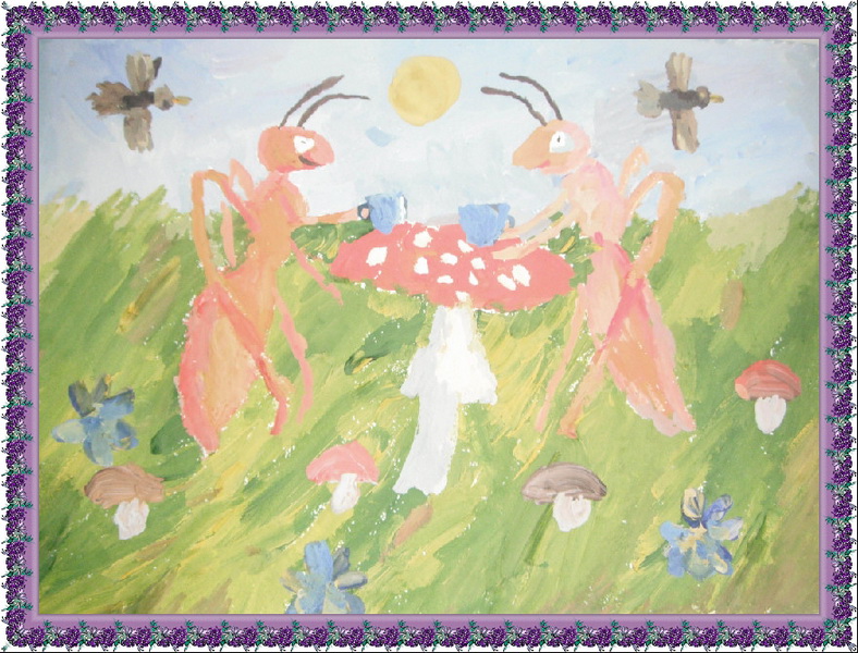 Третье место -Гусенички на лужайке Авдеенко Аня, Детская школа искусств №2, Самарская область, п. Яблоневый овраг