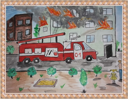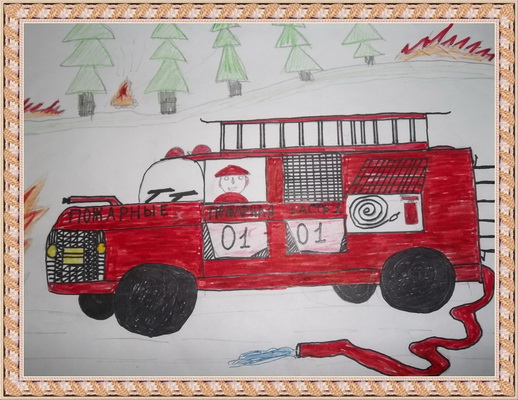 Третье место -Куда спешит пожарная машина Миженин Иван, Средняя общеобразовательная школа, с. Усть-Ивановка