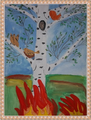 Второе место -Пожар в лесу Марцонь Екатерина, педагог Сергеева Татьяна Васильевна. Центр детского творчества, г. Тында