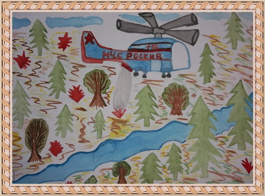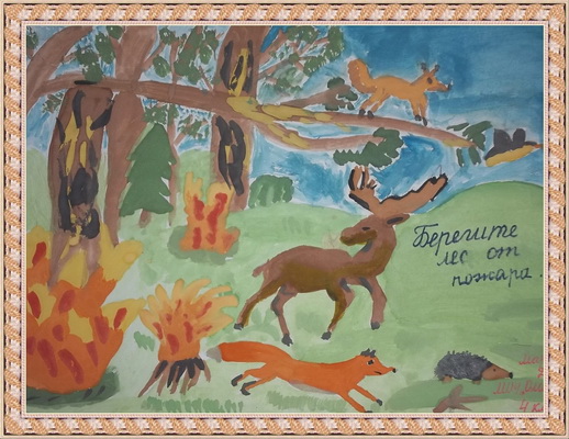 Третье место -Пожар в лесу Мардасова Дарья, педагог Надбитова Галина Борисовна. Средняя общеобразовательная школа, с. Оля