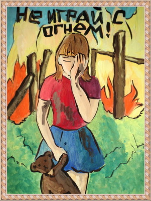 Второе место -Не играй с огнем! Подольская Наталья, педагог Баранникова Ольга Юрьевна. Детская художественная школа №4 им. П.И.Котова (филиал мкр. Степной), г. Ахтубинск