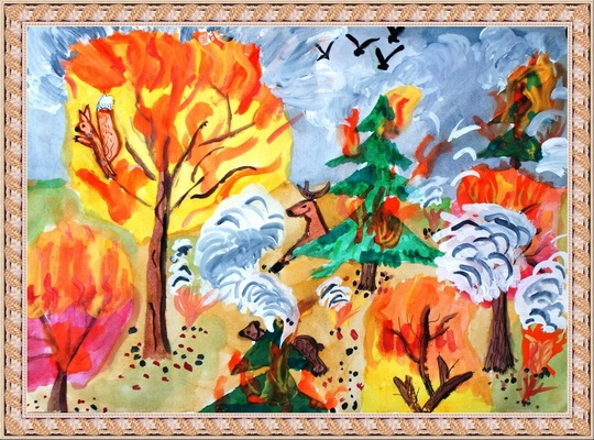 Второе место -Пожар в лесу Варлахова Евгения, педагог Овчинникова Алевтина Викторовна. Центр развития творчества детей и юношества "Звёздный", г. Астрахань