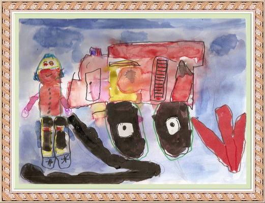 Второе место -Куда спешат красные машины? Савченко Максим, педагог Щедрина Ольга Дмитриевна. Детский сад №69 "Ладушки", г. Старый Оскол