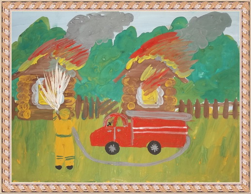 Второе место -Пожар в деревне возле леса Пронюшкин Максим, педагог Егорова Надежда Владимировна. Детский сад №162 "Акварелька", г. Чебоксары