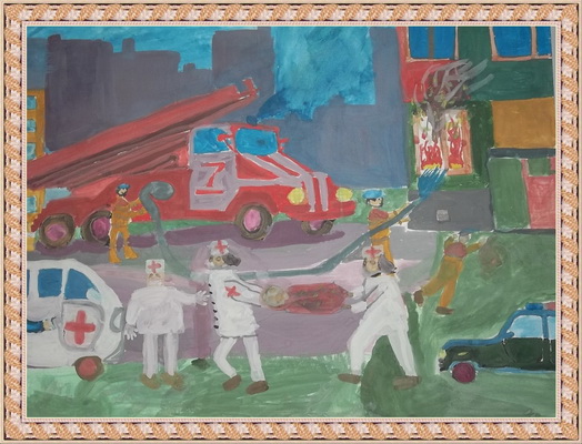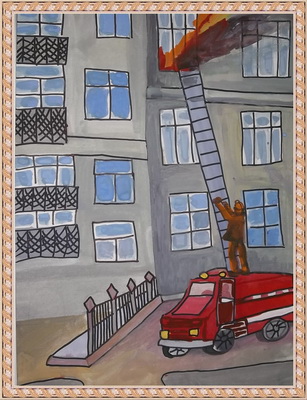 Третье место -Рабочий день пожарного Мелякина Полина, педагог Гусева Александра Евгеньевна. Центр детского творчества