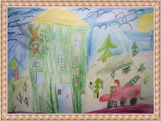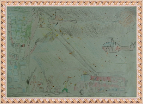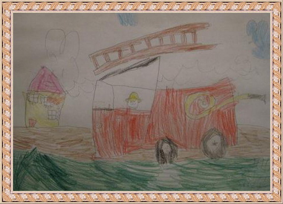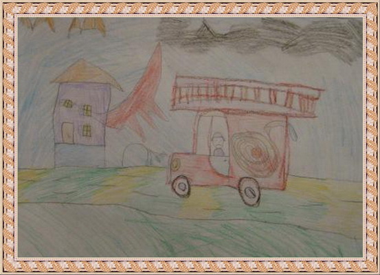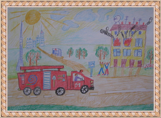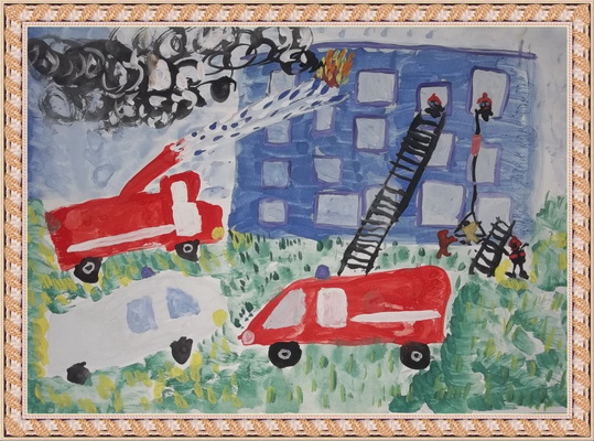 Третье место -Пожарные машина спешит на помощь Мосина Вика, педагог Музафарова Светлана Михайловна. Центр детского творчества, г. Междуреченск