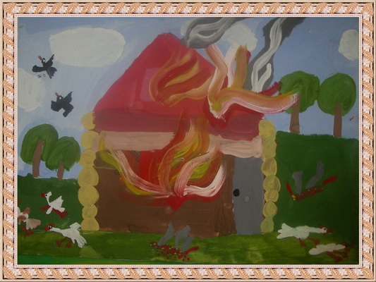 Третье место -Пожар на даче Сухомлинова Настя, педагог Алиева Елена Витальевна. Центр развития творчества детей и юношества, г. Кемерово