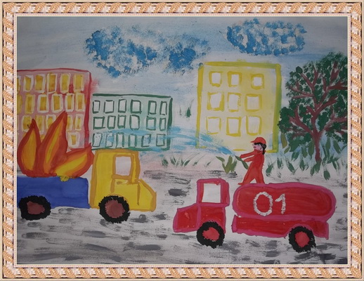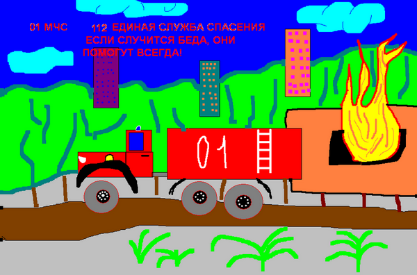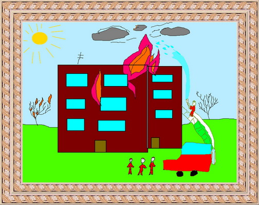 Второе место -Пожарные спешат на помощь Ващенко Егор, педагог Долгова Ольга Николаевна. Дворец детского (юношеского) творчества, п. Бугры