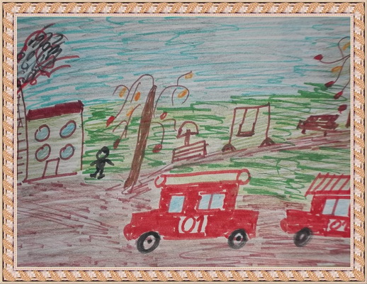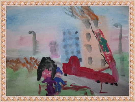 Третье место -Пожарники и пожар! Назарова Юля, педагог Печникова Гаянэ Арсеновна. Детский сад №5 "Сказка", г. Мытищи