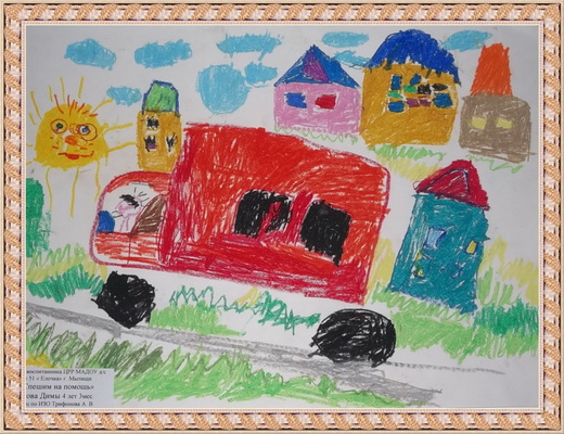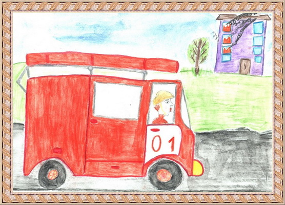 Победитель -Пожарная машина спешит на помощь Елизарова Виктория, педагог Баловнева Елена Алексеевна. Детский сад №27 "Семицветик", п. Коммунарка