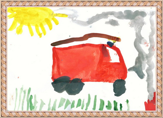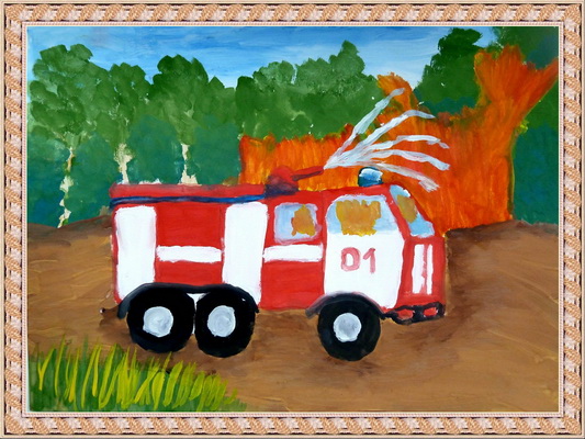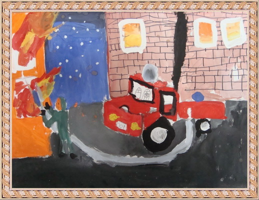 Второе место -Красная машина на пожаре Илюшина Полина, педагог Назарова Ирина Александровна. Детская школа искусств, г. Ступино