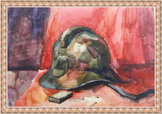 Второе место -Натюрморт с каской пожарного Кучумова Алена Андреевна, педагог Реброва Ольга Владимировна. Детская школа искусств, г. Искитим