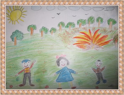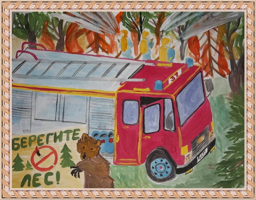 Второе место -Лес горит! Добкина Злата, педагог Прокопенко Любовь Викторовна. Гимназия №7, г. Оренбург
