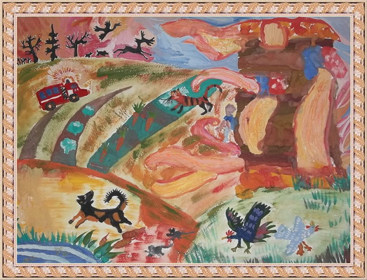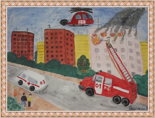 Второе место -Куда спешат красные машины Суркова Александра, педагог Мосолова Виктория Ивановна. Гимназия №5, г. Рязань