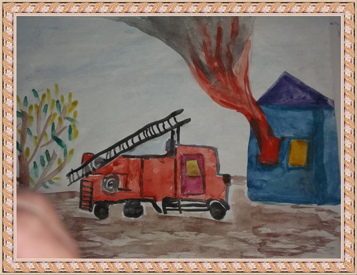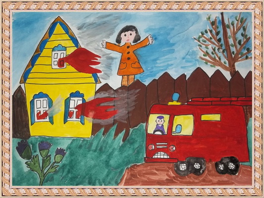 Третье место -Пожар в доме Лаптева Вика, педагог Туманина Ольга Владимировна. Детский сад №12, г. Отрадный