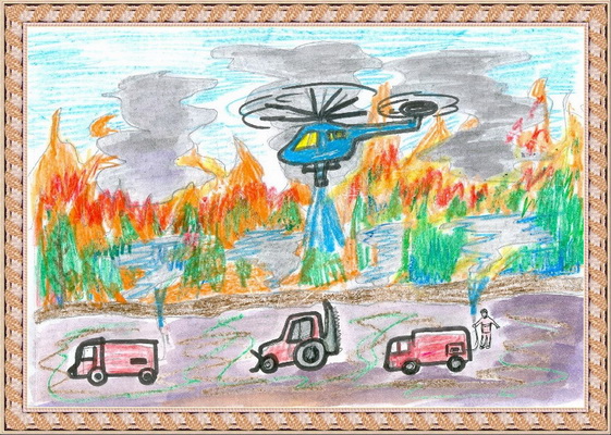Второе место -Пожар в лесу Шабанов Расим, педагог Котова Ольга Васильевна. Детско-юношеский центр "Планета", г. Тольятти