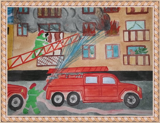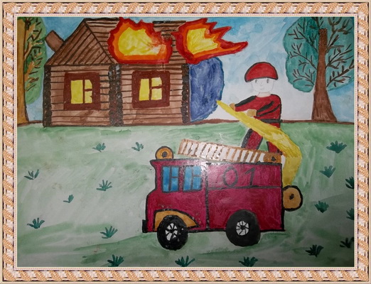 Третье место -Рабочий день пожарных Федорова Валерия, педагог Никифорова Татьяна Ильинична. Средняя общеобразовательная школа, п. Ровное