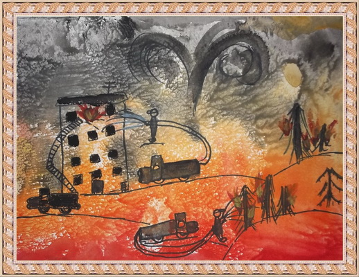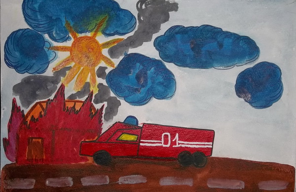 Второе место -Ночной пожар Степанова Карина, педагог Винниченко Оксана Николаевн. Центр внешкольной работы, г. Суздаль