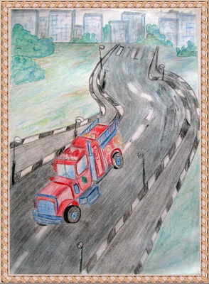 Победитель -Куда спешат красные машины? Виктория Носкова, педагог Людмила Павловна Ковалева. Средняя общеобразовательная школа №3 им. М.Горького, п. Средняя Ахтуба
