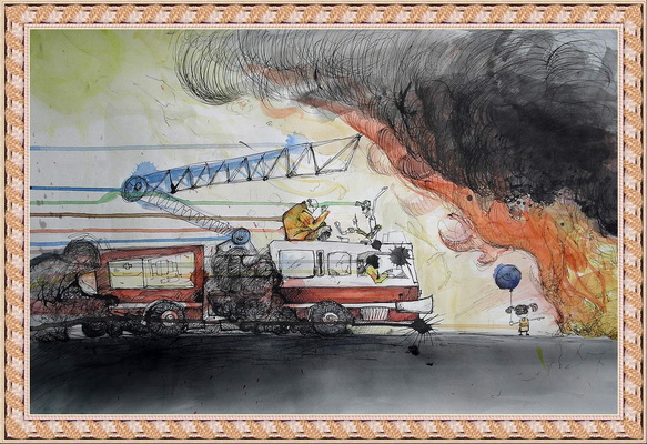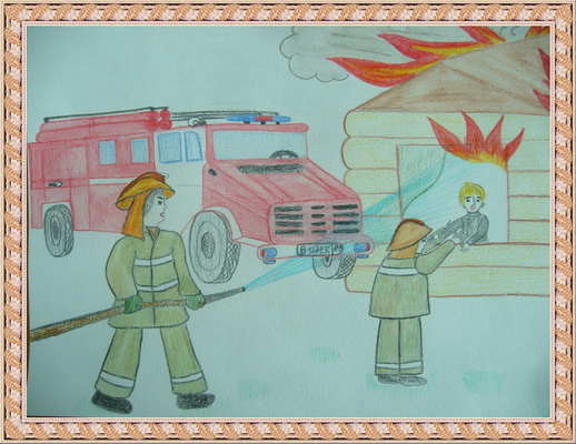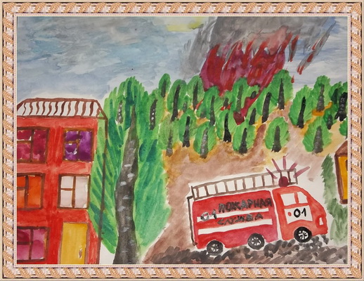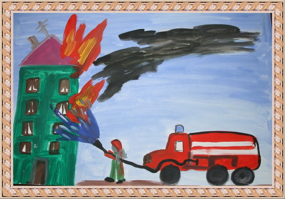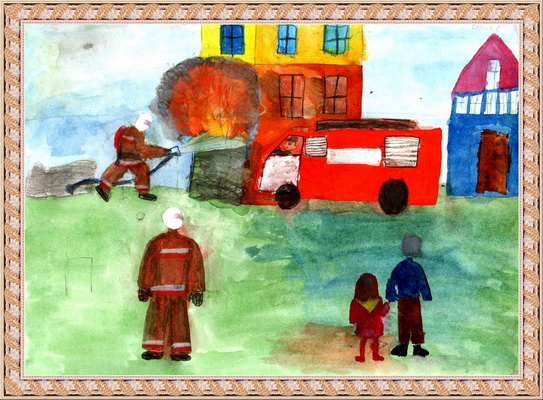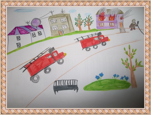 Третье место -Пожарные прибыли вовремя Суховей Денис, педагог Вашумирская Севим Албенковна. Детский сад, г. Губкинский
