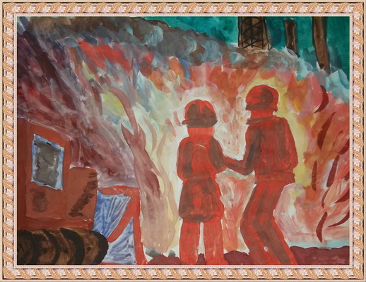 Третье место -Пожар в лесу Прошункова Лиза, педагог Романюк Ольга Ивановна. Детский сад, г. Новый Уренгой