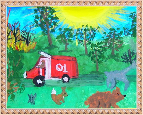 Второе место -Спасаем лес от пожара Сайнахов Дмитрий Евгеньевич, педагог Маланина Наталья Тимофеевна. Детский дом "Родничок", с. Красноселькуп