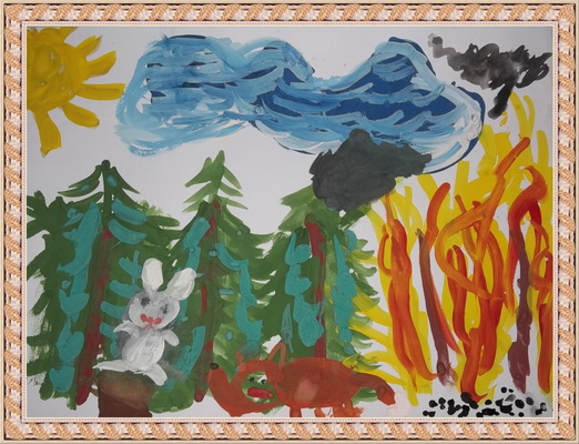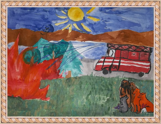 Победитель -Пожар в лесу Хамаганова Зоя, педагог Моисеева Н.А.. Начальная общеобразовательная школа №1, п. Нижнеангарск