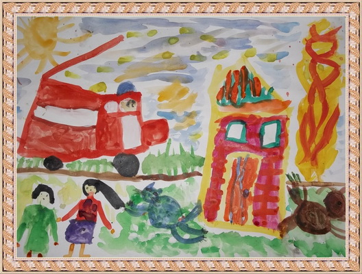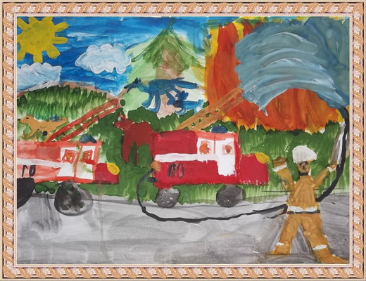 Второе место -Помощь во время пришла спасли деревню от огня Мункожаргалова Аяна, педагог Куимова Елена Цыреновна. Национальный музей, г. Улан-Удэ