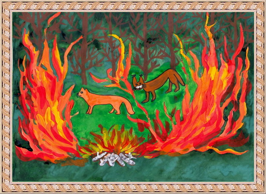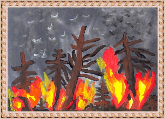 Третье место -Пожар в степи Хохоев Тимур, педагог Гуцунаева Ольга Эдуардовна. Дворец детского творчества, Республика Северная Осетия - Алания, г. Владикавказ
