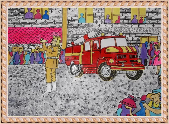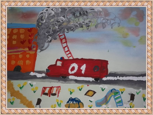 Третье место -Опасный труд пожарных Прохорова Света, педагог Прохорова Оксана Васильевна. Детский сад №7, Калининградская область, г. Калининград