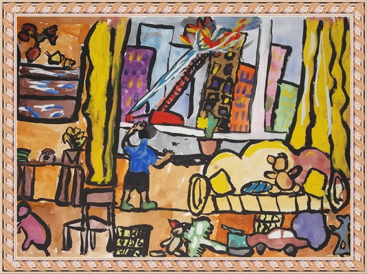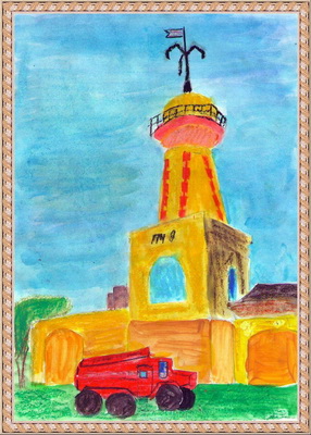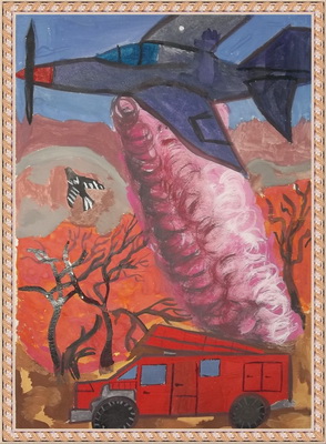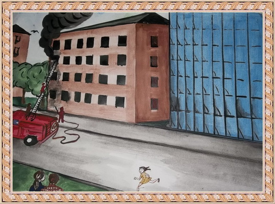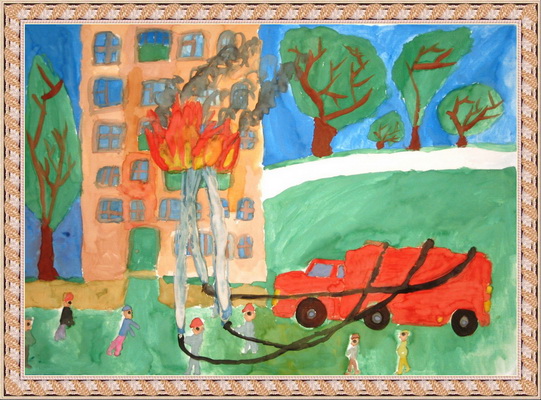 Третье место -Пожарная тревога-пожарные в дорогу! Файрушин Никита, педагог Крючкова Евгения Витальевна. Центр эстетического воспитания "Детская картинная галерея", Челябинская область, г. Магнитогорск