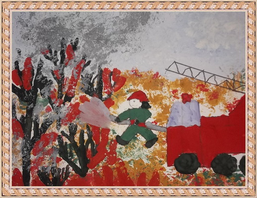 Второе место -Бравые пожарные Кирсанова Лиза, педагог Коллективная работа. Детский сад "Лесная сказка", Челябинская область, г. Озёрск