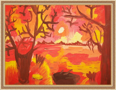 Третье место -Золотой пейзаж моей Родины Россиков Даниил, Дом детского творчества, г. Удомля