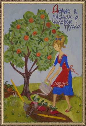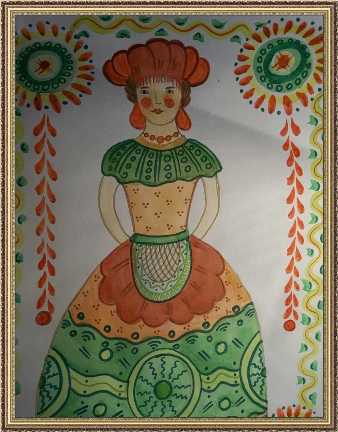 Второе место -Лубочная картинка по русским поговоркам. Раулец Анна, Детская школа искусств, г. Московский