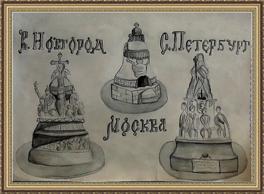 Второе место -Композиция: Памятники России: Царь-Колокол, 1000-летие Руси, Царица Екатерина II Гашутина Александра, педагог Лопуха Елена Ивановна. Детская школа искусств "Вдохновение ", г.Москва