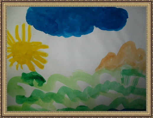 Второе место -Солнце, горы и река-это Родина моя! Курманбакиева Арина, педагог Аржановская Анна Георгиевна, Жернакова Данна Александровна. Детский сад №11 "Буратино", Ямало-Ненецкий автономный округ, г.Салехард