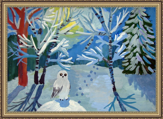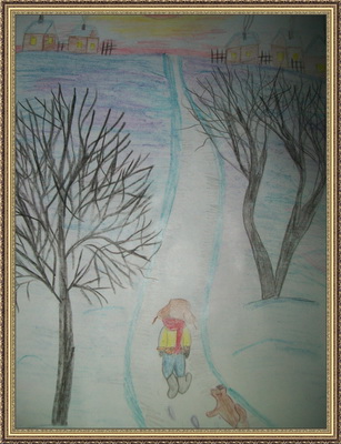 Третье место -Зимнее утро Лапкевич Евгений, педагог Кузьмина Наталья Николаевна. Детский дом "Петропавловский", Омская область, п.Муромцево